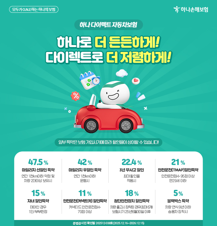 하나손해보험(주)는 상품을 충분히 설명할 의무가 있으며, 계약자는 보험을 가입하기 전에는 충분히 설명 받으시기 바랍니다.