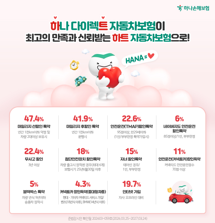 하나손해보험(주)는 상품을 충분히 설명할 의무가 있으며, 계약자는 보험을 가입하기 전에는 충분히 설명 받으시기 바랍니다.