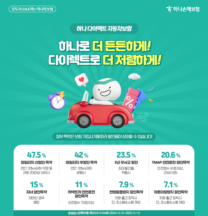 하나손해보험(주)는 상품을 충분히 설명할 의무가 있으며, 계약자는 보험을 가입하기 전에는 충분히 설명 받으시기 바랍니다.